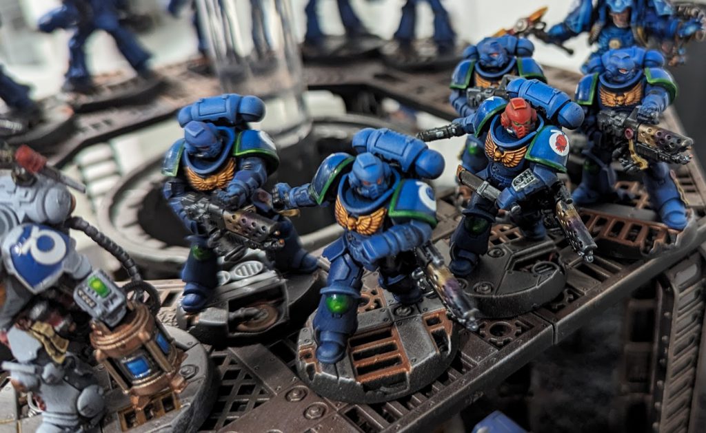 Cobalt Scions Space Marines army. Credit: Charlie BrassleyThe issue then discusses the Infernus Squad, and gives us a table to name and characterize the Squad. I rolled a 4, and thus my Ultramarines 4th Company, 7th Squad Infernus Marines are now Squad Fabian, which are specialists in brutal boarding actions on enemy ships.