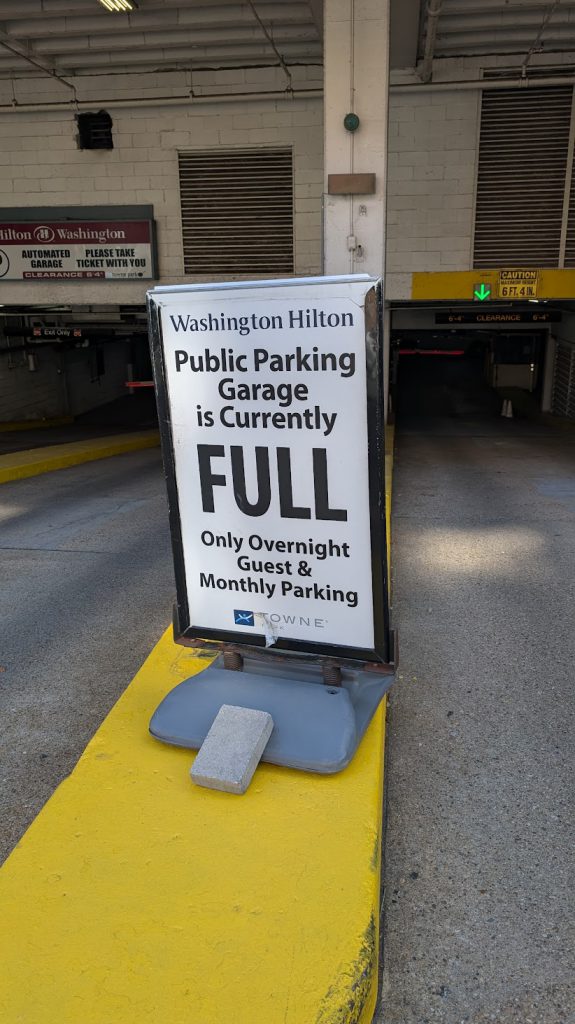 Credit: Kevin StillmanI know NoVa. I know for a fact that Wednesday afternoon and evening, the Washington Hilton gets busy and the parking lot fills up. So after waking up, taking the little one for a walk, and working out, we load up the car and drive into Washington D.C.