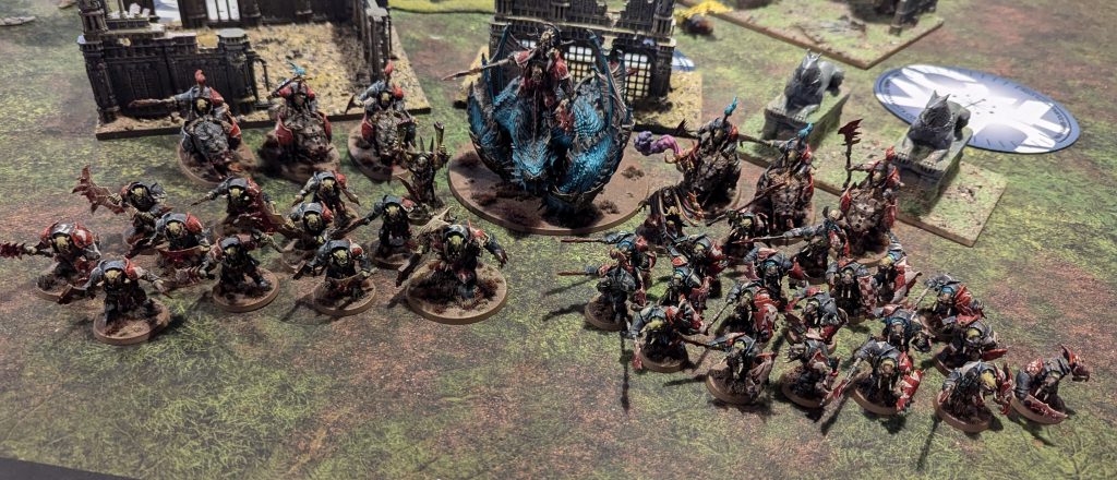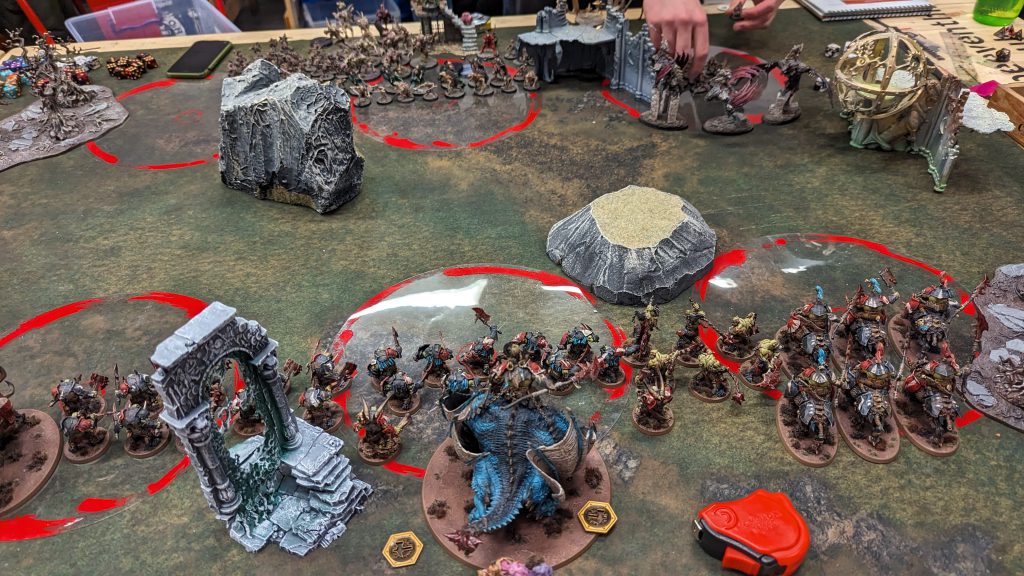 Facing off against some FEC at Goonhammer Open. Credit: Rich NutterNot content with attending events, I also ran a 1-day AoS RTT for my local community! Event organising is a huge strain, it turns out, but it was really fun and I had a lot of good feedback. This prompted me to start assembling some tables of terrain for myself, both to use at home and to supplement my FLGS's supplies for future events. Huge thanks also to pod co-host Laura, who travelled for the event to be my spare player and extra judge. The support was invaluable.