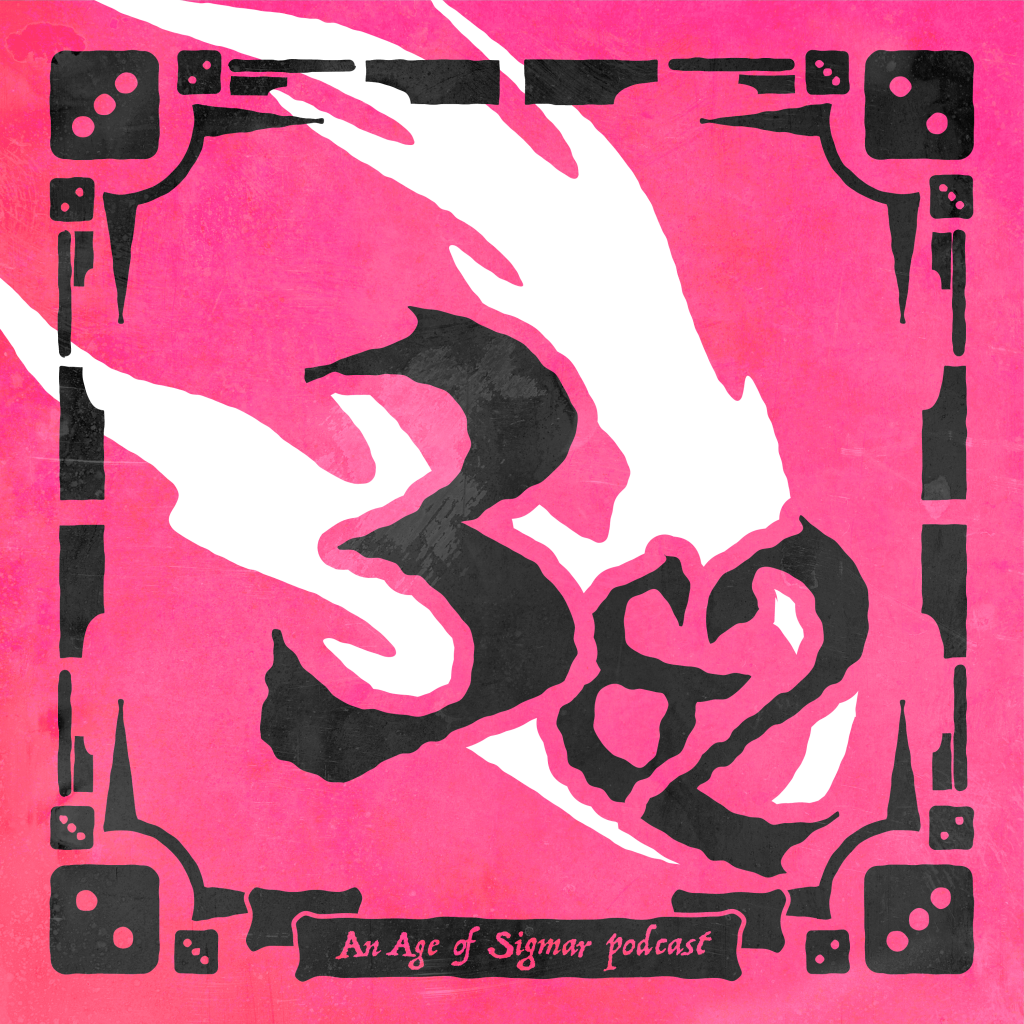 Three and Two podcast logo. Art by James AloneFinally, I’d be remiss not to mention Three and Two: A Matched Play Age of Sigmar Podcast. For the past couple of years I’ve been doing this pod with fellow Goonhammerer chimp and our friend Laura, covering events and our thoughts on the game in general. We’ve even done an (incredibly cursed) tier list, the sure-fire indicator of a high quality piece of media. It’s available at all good podcast shops, or whatever.