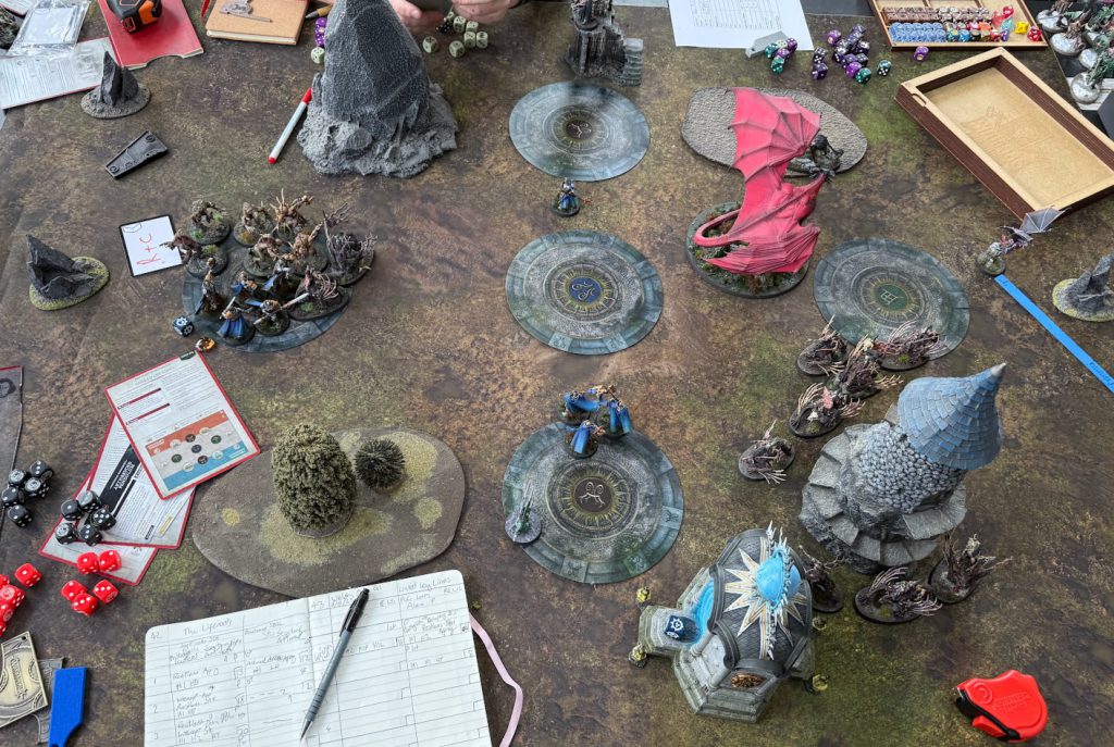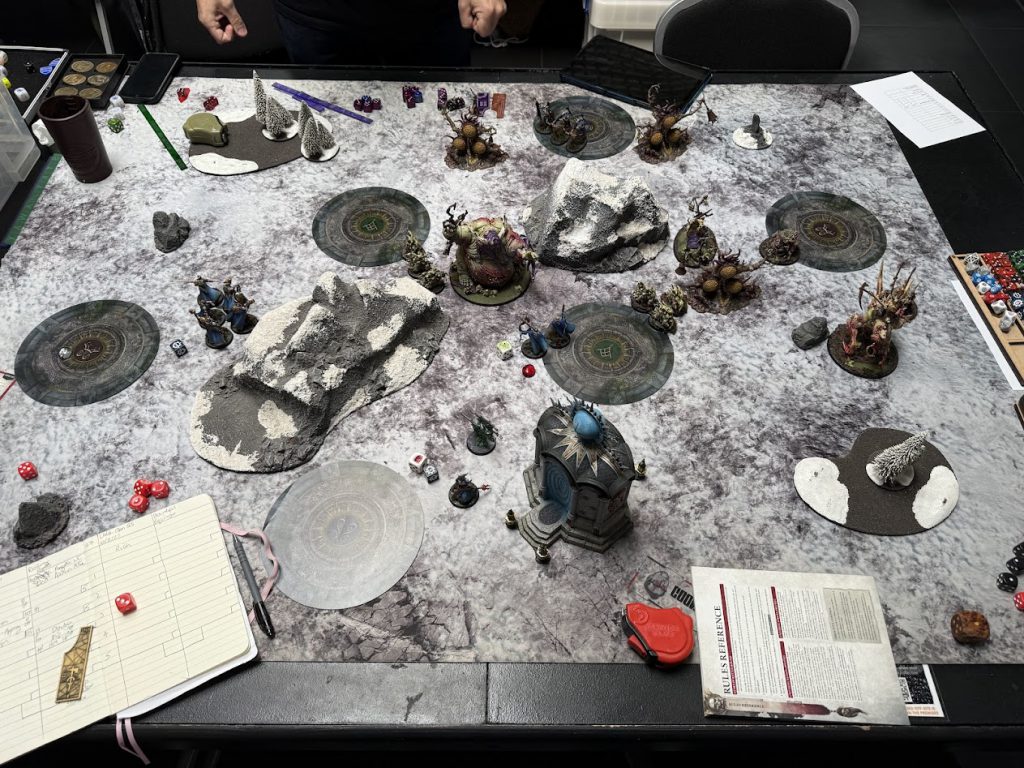 Rotigus makes his mark (sticky, presumably). Credit: Rich NutterTurn 4 was mostly movement focused for both of us, with Aaron reclaiming his backfield objective but not killing my unit. He won priority into 5 and got 15 points to pull 5 ahead, which I made up in my turn by holding 1. We ended on a 50-50 draw, both with 3 battle tactics scored, a true tie. I think if I had won turn 5 priority I might have been able to kill Slimux to get another tactic and win by 5, but it would have been dicey as hell.
