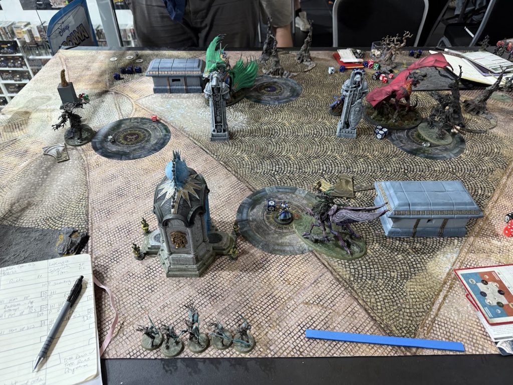 We rose, ate a perfectly tolerable breakfast bap, and Ubered across to the venue from the hotel. We checked in, and I said hi to some other club members at the event from the team I’m part of, The Mighty Redeployers. Pairings were released, and we made our way to our tables.Game 1: Linked Ley Lines vs Alex’s Flesh-Eater Courts