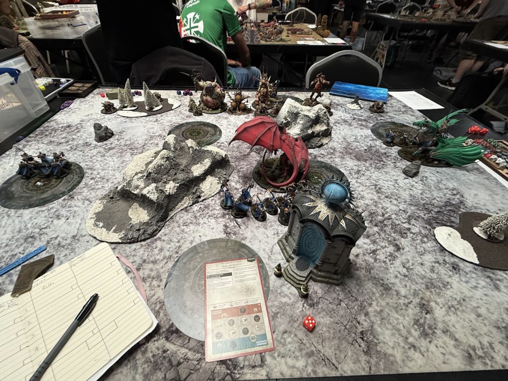 Sunday I woke up feeling refreshed, and we checked out and made it across to the venue without incident. I was initially paired into a Gitz list (lots of Squigs) for Game 4, which I was feeling alright about as I know how to play it with my list, but due to some late arrivals I was shuffled into a new opponent.Game 4: Roiling Roots vs Aaron’s Maggotkin of Nurgle