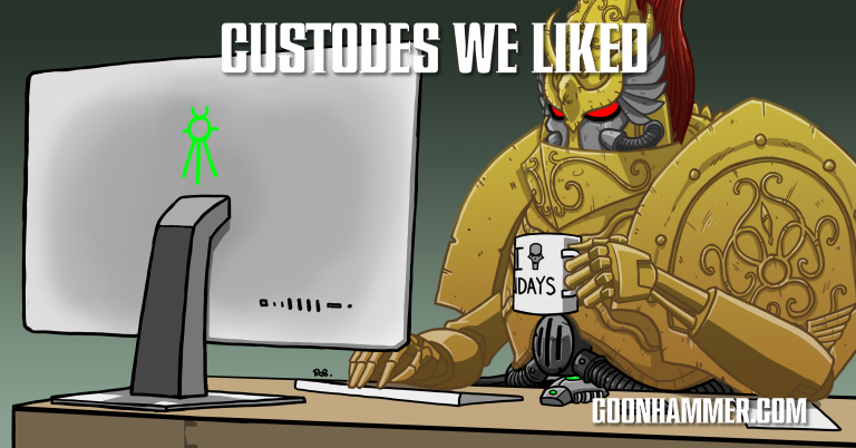 So kick back and join us as we explore the top Custodes-related content on the internet this week, Goonhammer included.