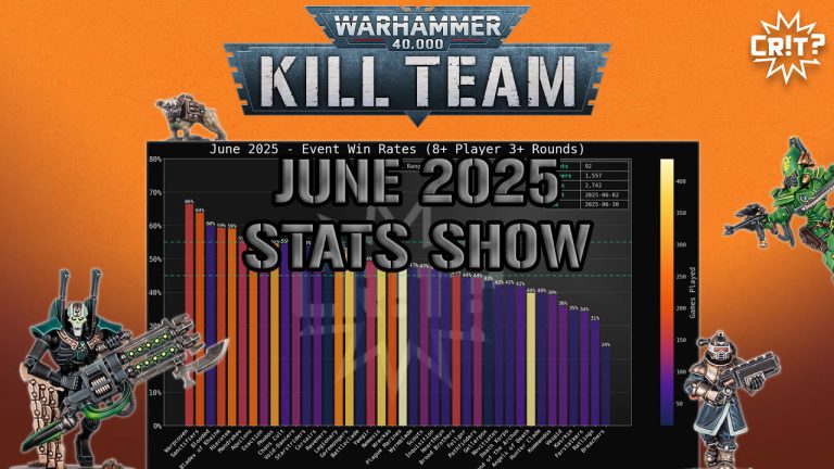 John from Can You Roll a Crit! is back again covering the June 2025 global tournament stats! He goes over all data from winrate, podium data, event wins,and more! He also covers the current Q2 data to see what could be changed in the next Balance Dataslate!