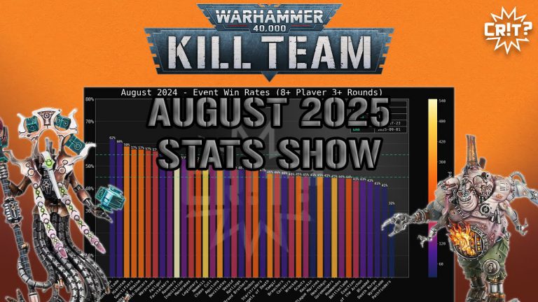 John from Can You Roll a Crit? is here covering the August 2025 global tournament stats! He goes over all data from winrate, podium data, event wins, and more! Time to see how much the July Balance Dataslate has changed the meta!