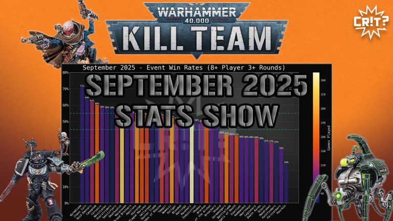 John from Can You Roll a Crit? is back covering the September 2025 global tournament stats for Kill Team! He goes over all data from winrate, podium data, event wins, and more! He also go covers all the Q3 data to see what may be changed in the October Balance Dataslate!