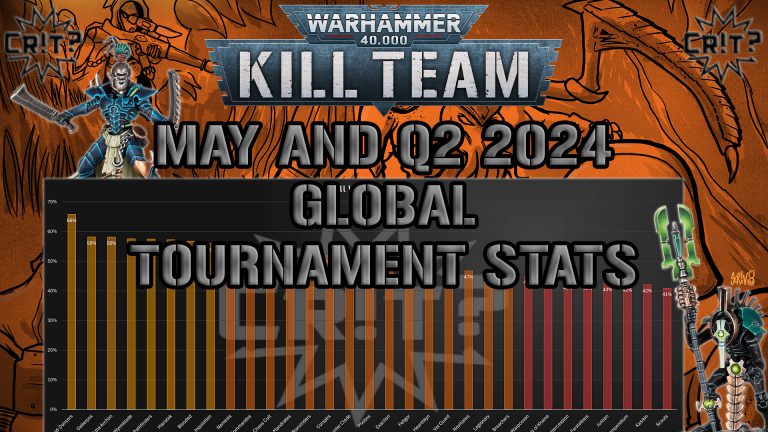 John from Can You Roll a Crit? has another installment of his monthly Kill Team stats show! This time not only does he cover all of the May 2024 data, he also covers the Q2 data since the last balance dataslate, helping possibly show which factions will be changed in the next June balance dataslate!