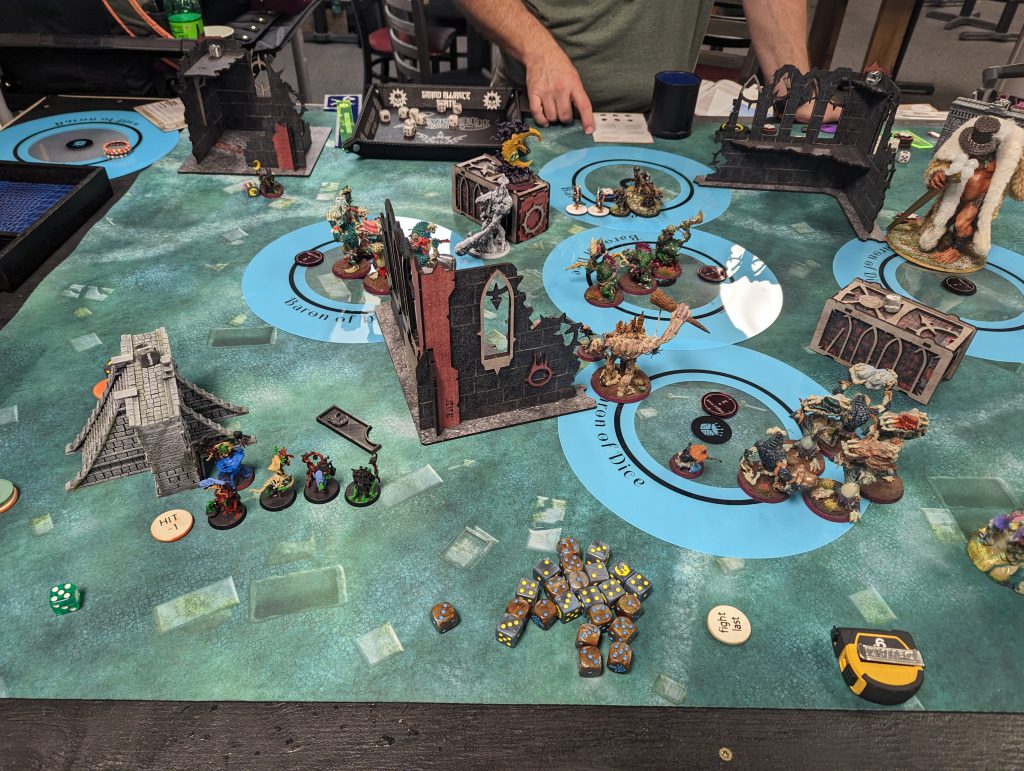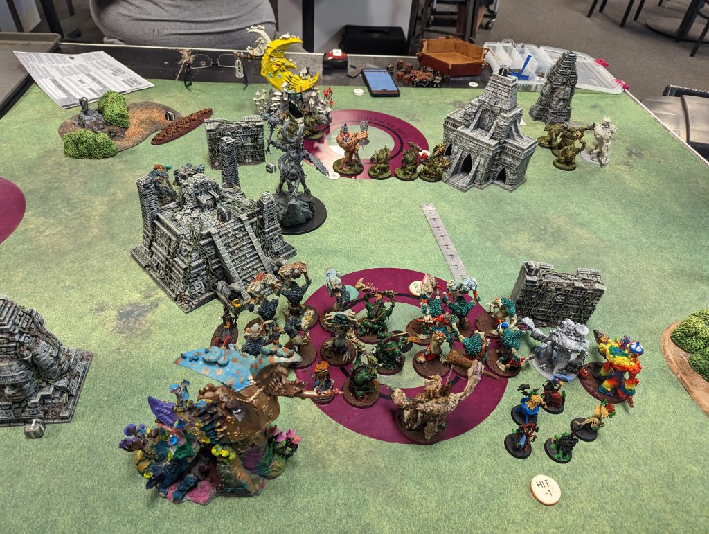 My first test of Troggs was again, with my son at Calvincon 2023, an event located in a house that served chicken and waffles, that really impressed how good troggs are for a midtable master like myself. Troggs are both hammer and anvil and don't require a charge to be effective. After a few tweaks based on that experience I went the April 15th Georgia Warband event at Discover Games. Discover Games is one of my favorite stores to play at and home to some of the more competitive and aggressive players around. I really wish that it was closer to my house so I could see them more.