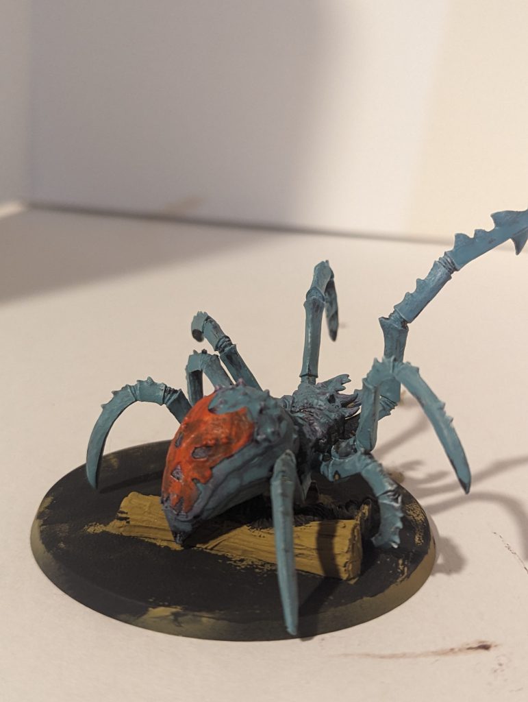 So this unit slaps. In addition to being the only spider to get venom on both the spear attack and the fangs it moves quickly and has GREAT command traits. I decided to split artifacts and have an offense/defense spider unit. The ability to hold back my general and have him come in when the board is pretty clear is a great option. Conversely, if I get the defensive unit and a Dankhold into combat with a big enemy unit splitting attacks becomes an EXTREMELY dangerous proposition. Nothing in my army brackets (a smart persons way of playing dumb).
