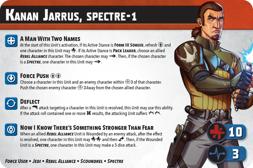 This second focuses on penalizing hyper aggressive lists by having someone step right up filling the void created when they wound you. Not having easy expose access really reduces your damage significantly but Kanan is a much more active piece than Leia if you can take advantage of it. This list wants to push models up the board into the danger zone and dare your opponent to attack them. Specters often get attacked early while Kanan is still in deployment, Cassian fixes this by giving him an advance that he can use before Kanan's jump. The ability to move Kanan twice when a model gets wounded also opens up soresu as a viable option without giving up your revenge attack. You do not want to live in soresu as K-2 and Ezra usually are better at keeping the point but if you are running low on force it is a viable option that is often dismissed. Your turns are best spent focusing on doing small amounts of damage but pushing the opponent back into their zone. The damage will build up especially in struggle 2 and 3 unless they have a lot of heal but like before rebel commandos are easily capable of doing 10-12 damage and knocking out 2 units during a shatterpoint. After struggle 1 your force is going to be a real disadvantage. Spending 2 force for covert ops on a wounded commando unit is almost always worth if it is a shatterpoint turn but if you also spend 2 on force push that leaves you with only 1 to spend on your other 5 activations. Fortunately most of your force hungry abilities are nice but not necessary to have productive turns and your defensive abilities other than K-2 don’t cost force at all.Matchups