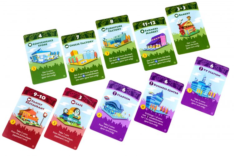 Machi Koro also rewards you to some extent for specialising - if you build a lot of ranches and then invest in cheese factories, you’ll be rewarded according to how many you have when you roll the right numbers. If you buy your landmarks in a certain order and invest in stores and cafes, you’ll get a big bump to your profits. The downside is that the more you specialise, the more times there are when the die or dice get rolled, and you don’t get anything because you’re not covering that number.
