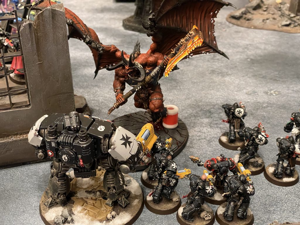Black Templars vs. Chaos Daemons. Credit: SRM and Joe