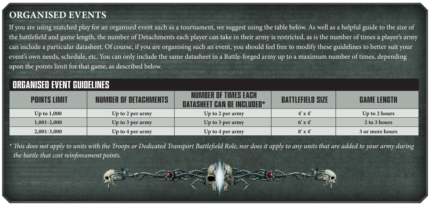 Most matched play missions (and all competitive events) require you to field a Battleforged army. In its simplest terms this requires two things: