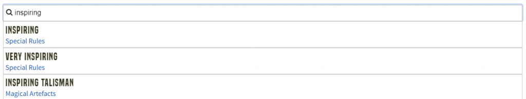 Up the top of the page are links to the Special Rules, Spells and Artefacts. This is incredibly helpful, especially for newer players. Army list construction is hard when none of the items or spells are familiar and you're constantly checking the rulebook for what they do. Now it's all one click away.