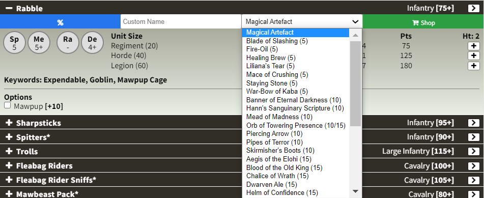 Another nice little tool is the “Buy unit” button, taking you straight to the Mantic website, so if you’re someone who builds one list and just plays that, you can get it all in one go. Of course, Mantic does not have every option available, especially for the older factions. Hopefully this will be something that improves with time as Mantic fills out their range.