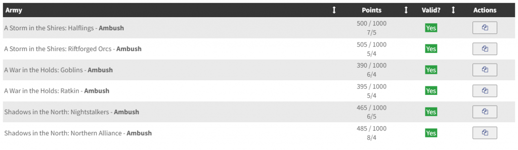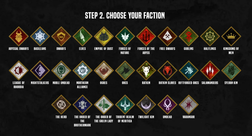 Choose your fighter!That’s where the new Getting Started section helps. Each of the factions are briefly introduced, but most importantly it links the starter sets to the army list builder, showing exactly what is present in each box and how this makes an Ambush-sized army. Right now, these are only the two-player starter sets. Yet soon new single-army starter sets will be released for six factions of Kings of War; these being armies with multiple plastic boxes (Halflings, Empire of Dust, Ogres, etc.). These boxes will have sizable armies for Ambush, and a QR code with which the army lists for that box can be instantly accessed.