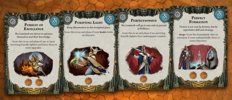 Purifying Light - 4/5 Actually a fairly good card, since you can score it in a variety of playstyles, but again, Myari himself is very squishy at 3 Wounds and any Disruption can mess up this plan. Still, it’s a flexible card that you can reliably score as long as he’s alive.