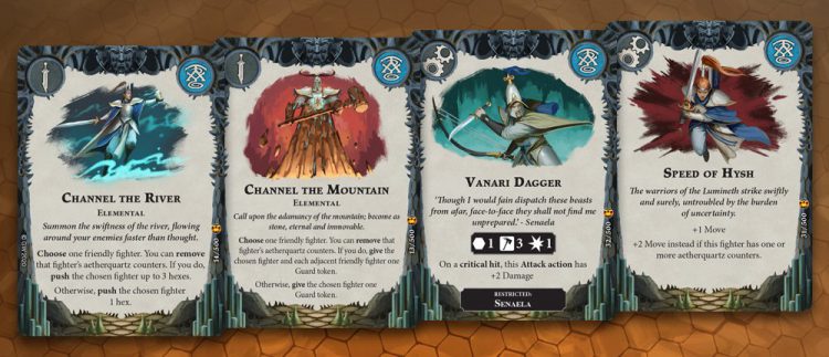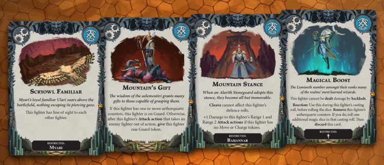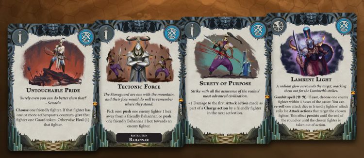 Aetherquartz is a nifty mechanic: a one-time reroll on fighters that roll a good amount of dice is never a bad thing, but again, it’s one-off, and there are a lot of Power cards that want you to keep them instead of using them early. There’s some metagame play here - do you use them early and hope to get a lead, or do you hold on and try to draw into powerful ploys that use the Aetherquartz counters?