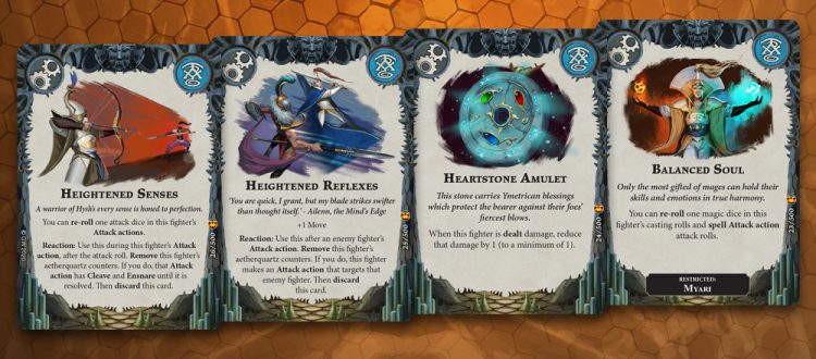 Heightened Reflexes - 4/5 The +1 Move is pretty inconsequential, but a free attack is always great. However, it’s very telegraphed - requires a Glory to Upgrade, an Upgrade slot, and then your Aetherquartz counter on top of that. However, free Attacks are free, and it’s a threat as long as it’s on a fighter. It’ll make anyone think twice about charging near an Inspired Bahannar. Raf: Has some interesting utility in that you can trigger it even if the fighter holding it is not the target, and it can be your archer 5 hexes away. Not sure if interesting also means "good" in this case.