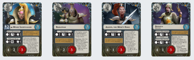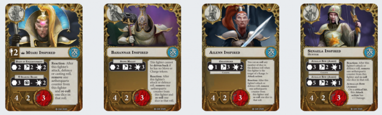Ailenn Your other melee fighter, she’s effectively a worse Bahannar until she inspires, and then she’s… fine. Going to 2 Shields is solid, and 3 Hammer with Cleave is excellent, but again, 3 Wounds, not particularly easy to inspire, makes her a liability as much as it makes her a power unit. If you want to use her aggressively, you have to be very particular about your engagements and positioning. Raf: I had high hopes initially for this fighter but she is firmly a support unit and one that desperately wants to inspire.