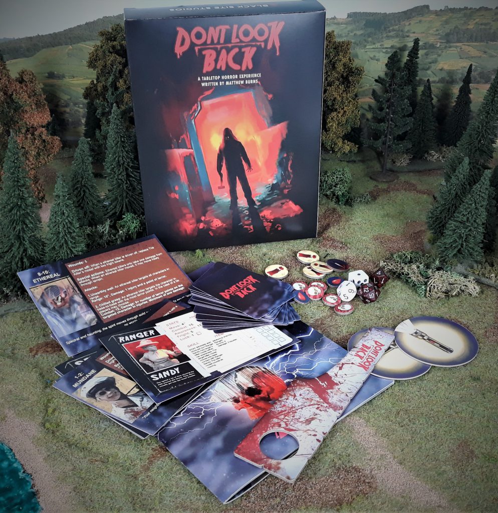 The official Killer model. Credit: Black Site Studios.If you’re a gamer who appreciates atmosphere and a hefty dose of storytelling, Don’t Look Back might be right up your alley. The core box contains everything you need to start playing out horror scenarios, all comfortably wrapped in the clichés of the genre. When I mean everything, DLB is a co-op game, and supports up to 4 players. I’ll get back to how this straddles the line between miniature and board game in a bit. Let’s look at the components first.