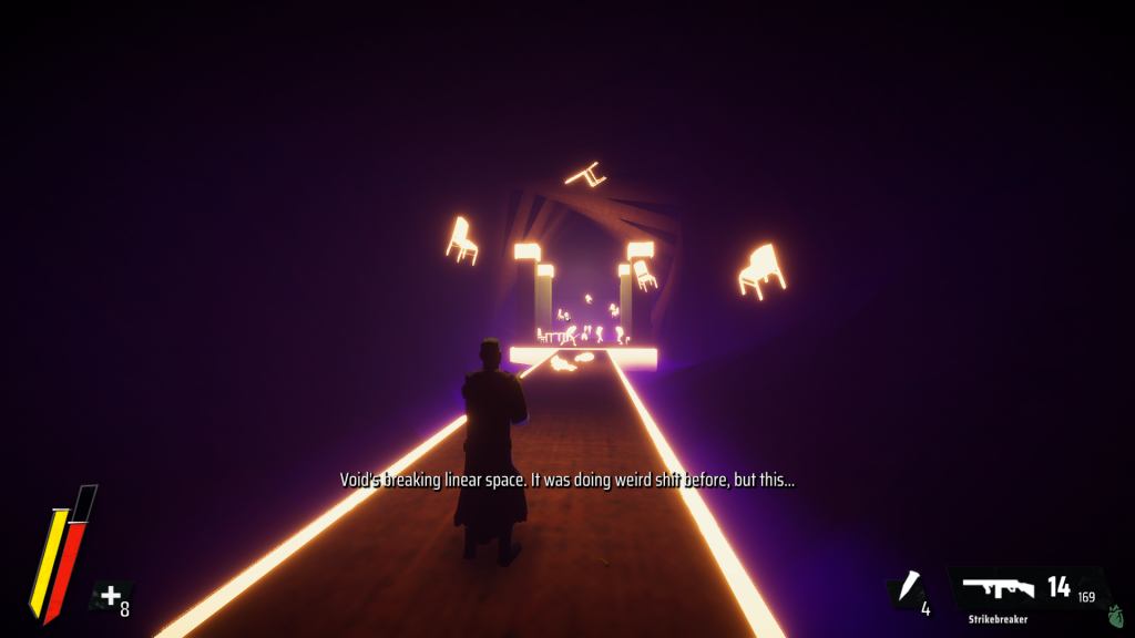 Despite these issues El Paso, Elsewhere kept my interest for the entirety of the game and during those moments where the gameplay was flat and the often repetitive levels dragged down my enjoyment the game's strong narrative was what kept pushing me to finish each level. It’s a story of love, of an abusive relationship and it’s all handled quite well in no small part due to the writing and voice acting for our two main characters.
