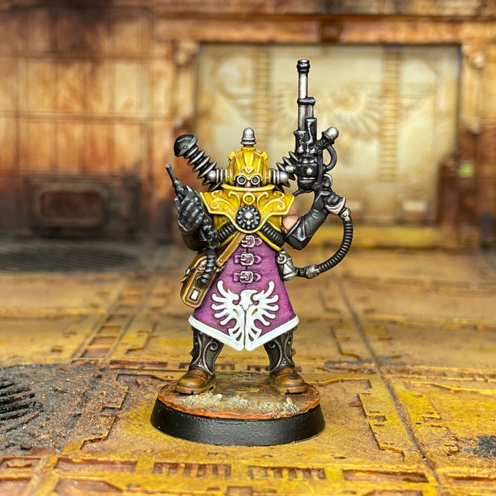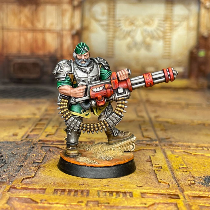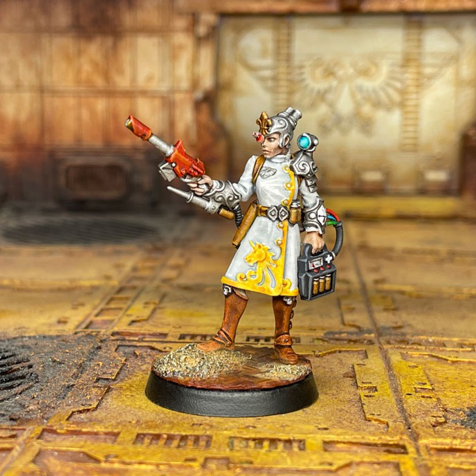 The sergeant character for your Voidsmen, wielding a super cool shotgun and an upgraded laspistol. This model buffs your nearby Voidsman and has a cool unique action.Disciplinarian – Friendly Voidmen within 4” get the Balanced rule on their weapons. A nice buff given Voidsmen are 4+ to hit.