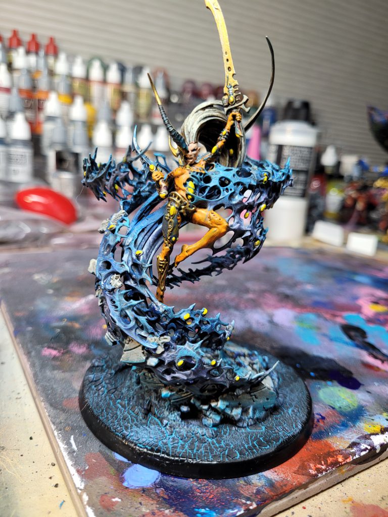 The only real thing I was missing from this list on the hobby front is the Yncarne. I did have one that I had not yet painted and this was just the motivation I needed to try a hard new model and reduce my unpainted miniature backlog (which is an act of good moral character). I then set about building the swirly death person which was a singularly unpleasant experience, the designers seemed to testing the absolute limits of what plastic glue can do with this kit and even when done right it is fiddly and fragile seriously just make overlapping attach points. After the build painting the swirly whirly bits really was interesting and only had me cursing when the thing fell apart part way through. That done I decided to try my list out and it turns out this list is actually mean as hell. That didn’t entirely surprise me after all I did pick the good aspects to bring, but the extent to which it killed and made trading back very hard surprised me a little. Which left me feeling like I was possibly doing a disservice to the event.