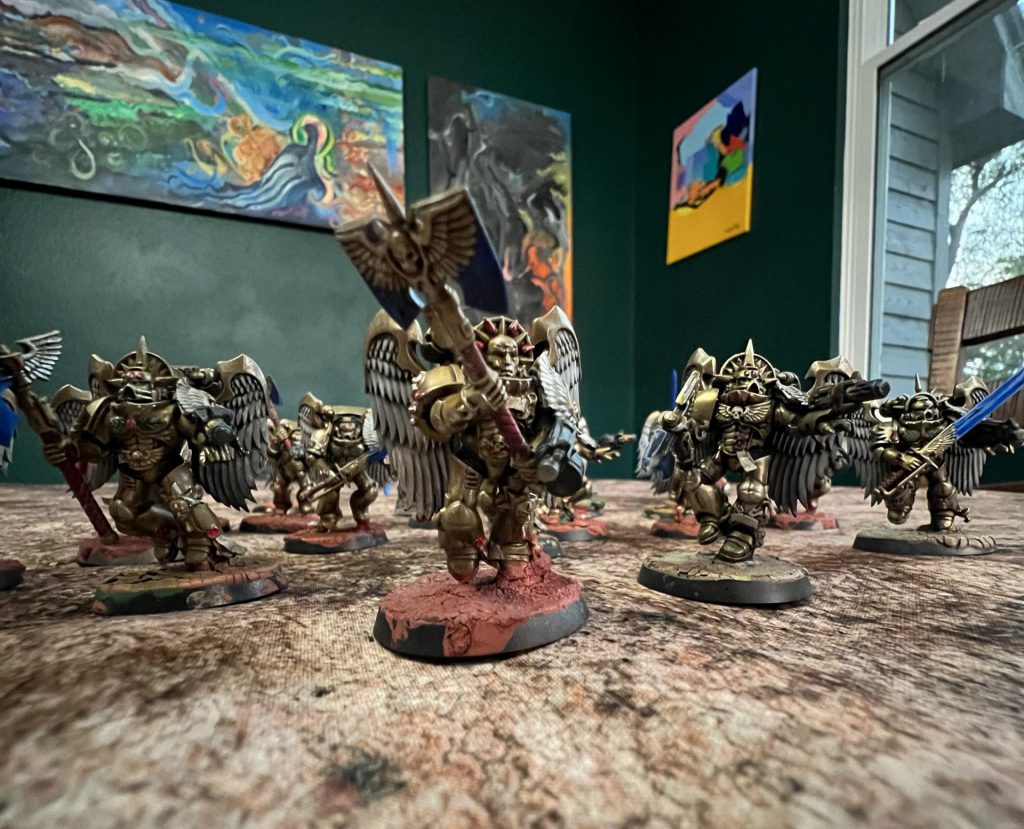 Credit: Erik NelsonFurther after reviewing my collection of Blood Angels it occurred to me that its probably not narrative friendly to have the last 3 generations of sanguinary guard who have existed all in one Crusade roster.