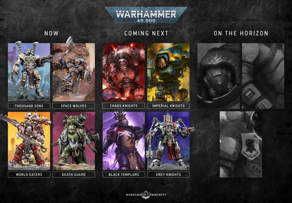 Norman: There’s an interesting wrinkle there, the roadmap in the stream is different from the roadmap in the article. The one in the stream makes more sense with the reveals, putting knights after grey knights and templars considering both seem to be involved in the Armeggedon stuff. Like you said though, this all points to not being able to trust these at all anymore.