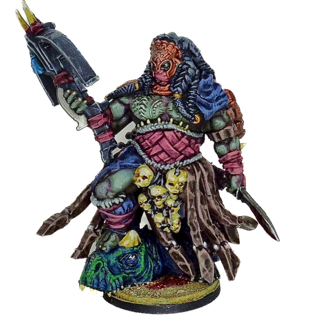 The big bad monster character of W'adrhŭn, and boy is she scary. The combination of traits between the Matriarch and the Apex predator creates a perfect harmony of tank, beatstick and buffer. You pay for it though, seeing as she costs almost half your army in a 1000 point game, but any objective you point her towards, you will almost always win. The Apex Queen lost her ability to give two orders and the Keratin deposit rules, but consider that your Loyalty ability applies to a giant murder lizard instead of the queen’s retinue.With a total of 23 wounds and no damage from resolve test, the Apex Queen might just be the hardest to kill model in First Blood!Infantry