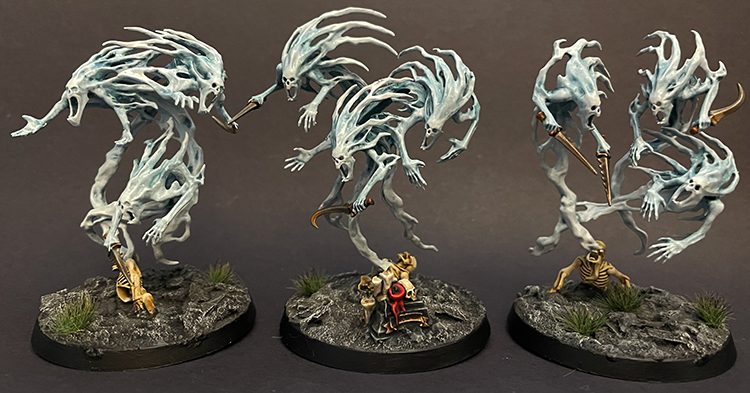 Last edition wasn’t built for Nighthaunt. The strong focus on monsters and Age of Sigmar’s bias towards strong monster heroes meant that Nighthaunt were left out of some of the more exciting rules. Even when they had a well received early codex a combination of 1” reach on weapons and 32mm bases meant that they were a fiddly army that didn’t always get everything into combat. Later on in the edition some of these combat ranges were extended to 2”.