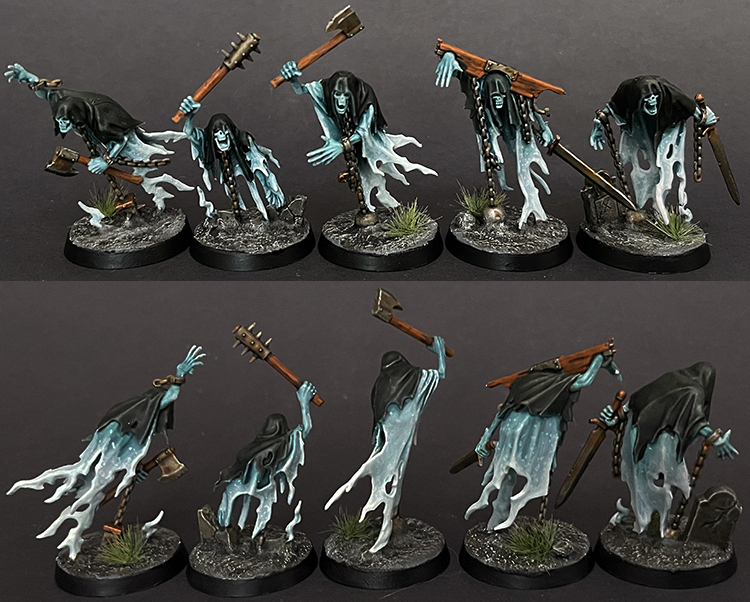 Shademist (6 Unlimited): If successful pick a nighthaunt unit with 3 or more models and if the casting roll is successful subtract 1 from wounds that target that unit until the start of your next turn.Spirit Drain (7): Pick an enemy wizard within 18. If the cast is successful, roll a dice for every model in the unit and inflict 1 mortal damage on the target for each roll of 5+.