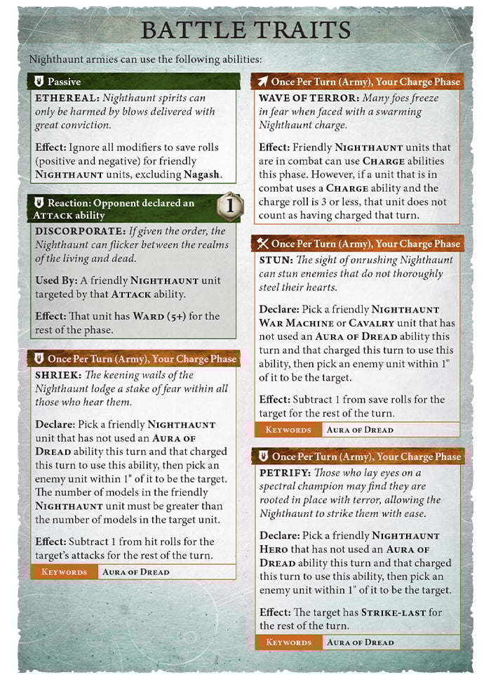 Ethereal (passive): This trait remains basically the same and non-Nagash Nighthaunt units will ignore all modifiers to save rolls.