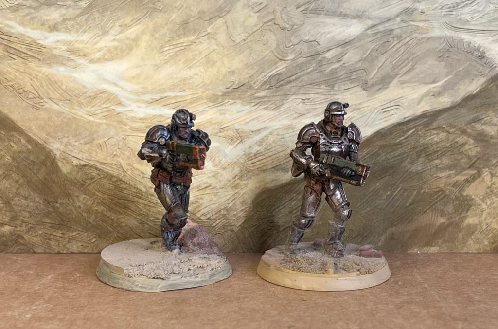 X-01 (Left), Resin (Centre), Plastic T45 (right) Fallout Brotherhood of Steel. Credit: LenoonThey scale well with Modiphius' plastic Power Armour sets, and you'll not notice any difference between the resin and plastic knights once they're on the table.