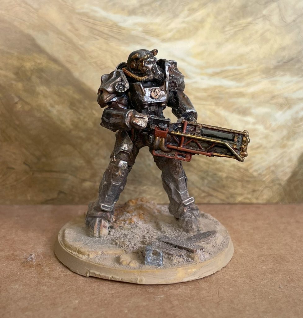 I painted these following (mostly!) SRM's How to Paint Everything: Brotherhood of Steel guide, subbing in oils for his brown washes to go for a patina of dirt instead of rust. It's a good guide, go read it!