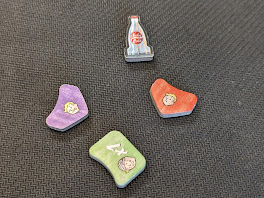 Fallout Factions tokens. Credit: LupeAlongside the dice (which are presented as custom dice with symbols on them, but are in fact just normal d10s, and you can 100% play with any other ten-sided dice you like, as long as you have a different colour to distinguish the luck dice from the rest) there are some nice chunky tokens in the box. These are cardboard, but they feel thick and solid, and there are a good number of each kind, but not an overwhelming variety. Most of them are used to track whether a model has done their action(s) in a round, or to track how much harm they've taken (a damage track that can be recovered with in-game actions and which adds bonus dice to enemy rolls against them). It's pretty easy to track, and the designs are simple but thematic.