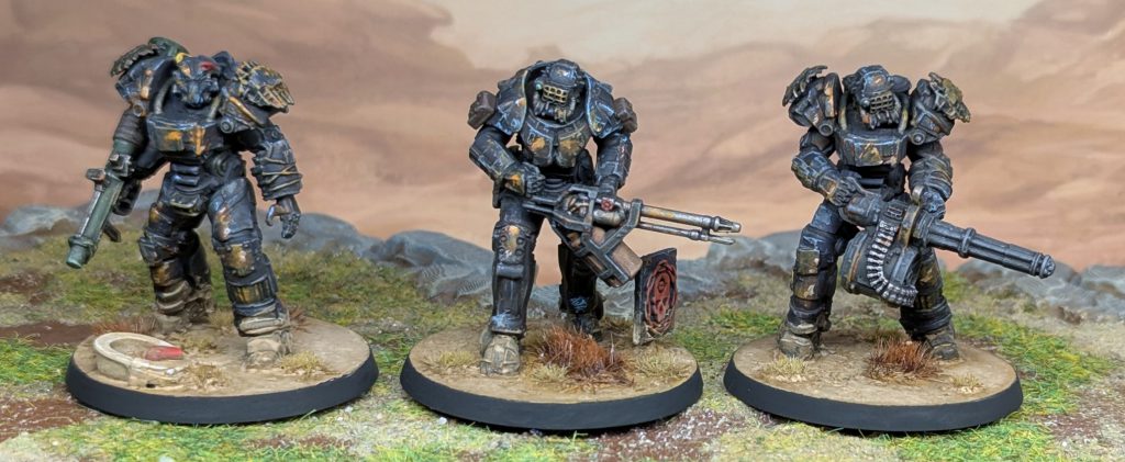 Wasteland Raiders power armor. Credit: Rich NutterFor my next run-out, there are going to be a couple of changes. I’m definitely removing Steady Aim from my flamethrower Butcher; in my hasty listbuilding I had missed that bonus dice can’t be applied to area weapons. I’m also going to drop Ricochet from my Boss. It seems like fun, but despite my boss being shot a lot over the day, it never triggered once. I’d like to see something make this happen slightly more often, as it does seem like fun. I think I’m also going to try running the non-power-armoured Veteran champion instead of one of the Butchers, and put some extra bodies on the board.