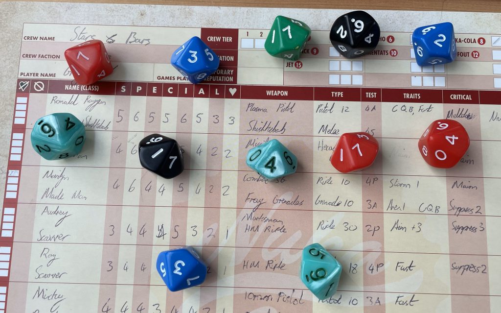 - Rocket Boy and his Missile Launcher were great… when I rolled well with it. Obviously that sounds like a no-brainer but there is an inherent swinginess to it that can’t be boosted with bonus dice due to it being an area weapon.