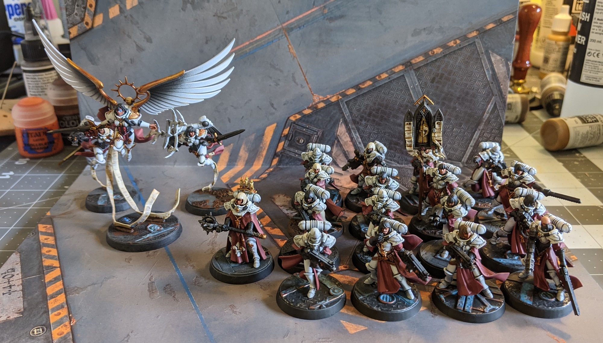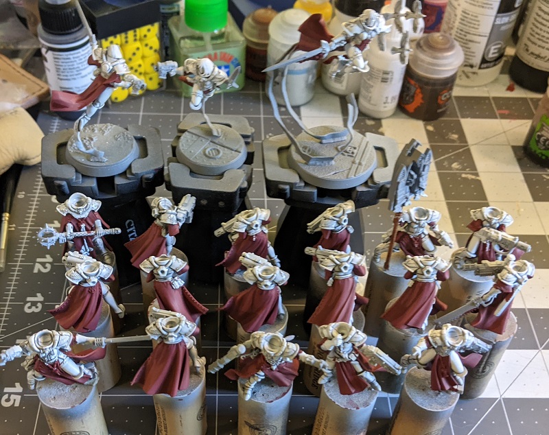Credit: Evan "Felime" Siefring, Click for BigFast forward to... well, Wednesday of the week after that. It took a bit of work to get them all done, but they're DONE, and ready to join the crusade. I did skip a few bits like the buttons on their robes and eye lenses on the helmeted sisters which I can get to when I have a bit more time, but nothing I think anyone's likely to notice from 3 feet away.