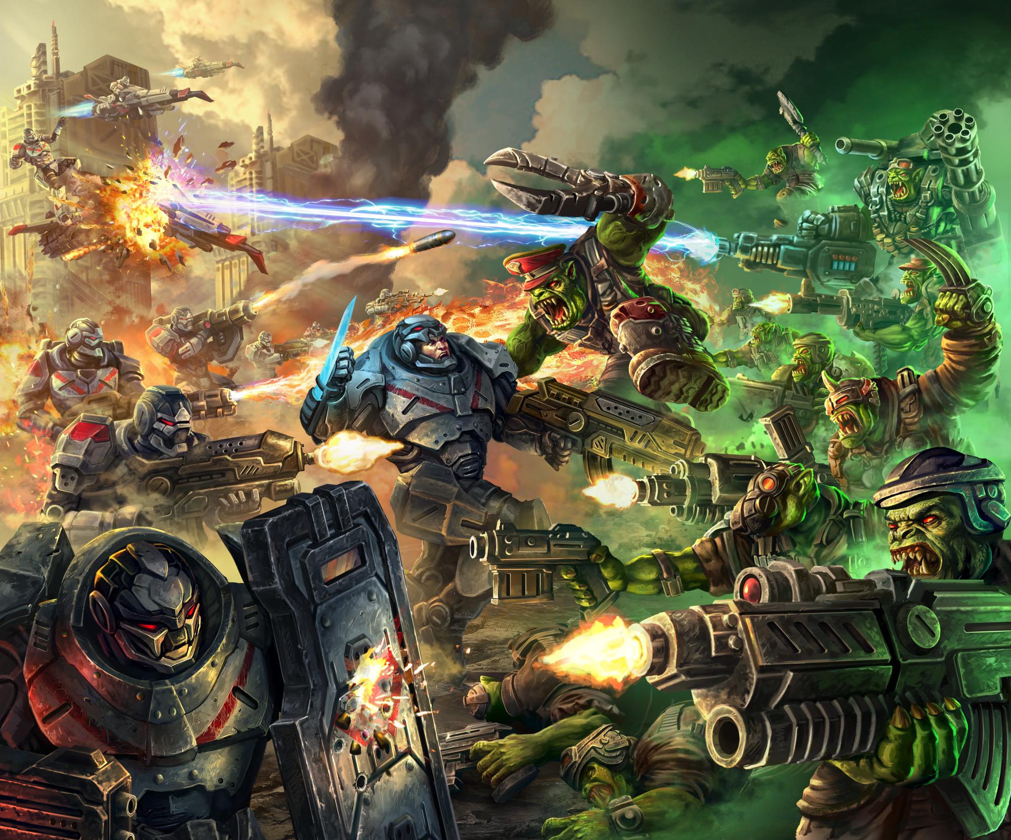Then you take the hits and roll to damage - you compare against the target's Armor. So if they're Armor 5, you need a 5 or better. AP will subtract from this - so AP2 would make that a 3 or better. 8s always pass and 1s always fail. There are no saving throws, you just roll to damage then allocate it to whole models.