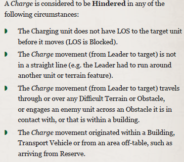 I like the differentiation here - you can Charge, you'll still get a bonus if it's hindered, but it is not as great. It's not a binary where if it's hindered you're just screwed. It takes a Quick to Play system and adds a layer that puts more strategy into the game. Hide behind an Obstacle or terrain and your unit will be harder to assault.