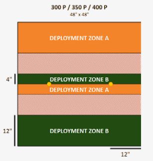 We think this might be the craziest mission in the pack (yes, crazier than the asymmetric objective room mission!) with the biggest impact on list building. Take a look at the shape of these Deployment Zones: