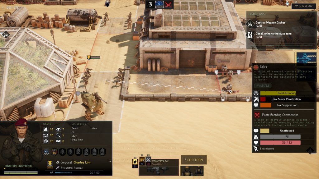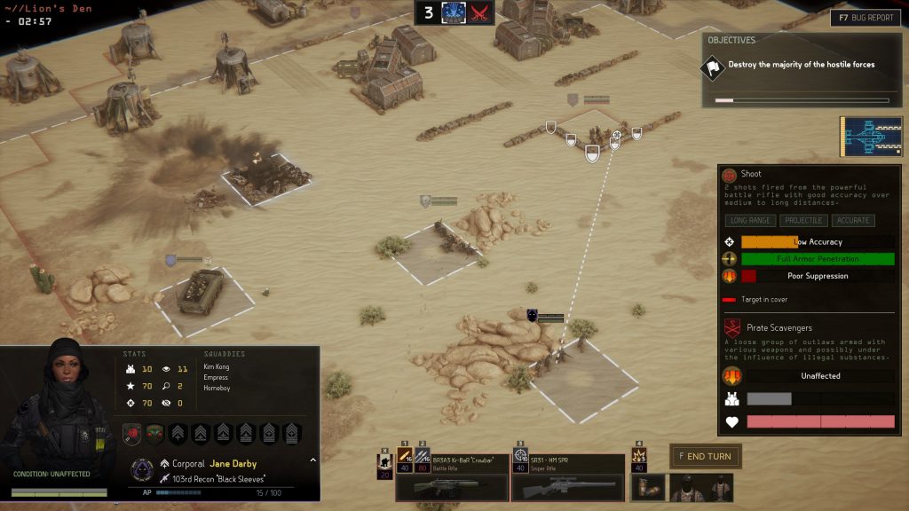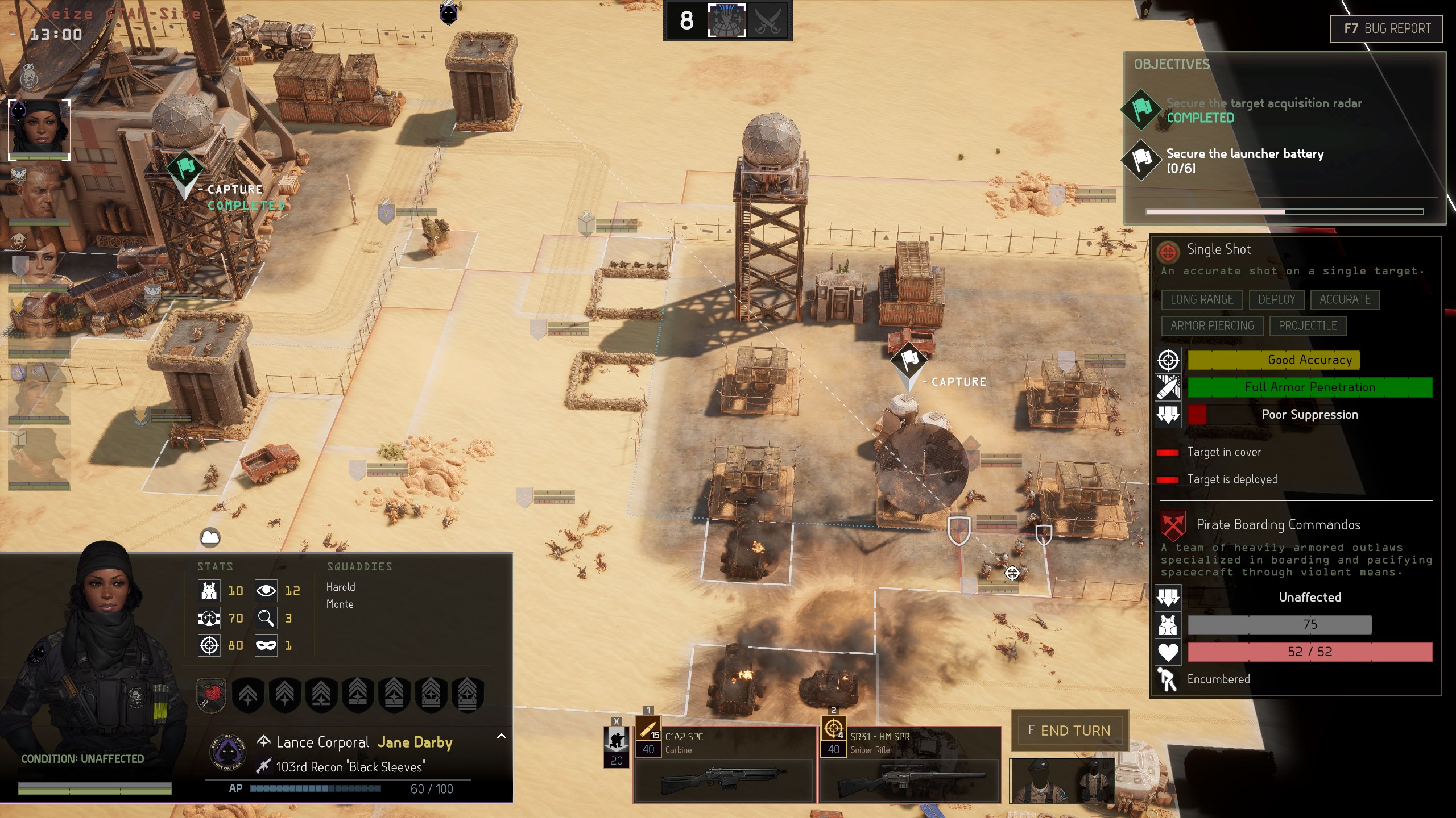 The combination of useful intel and comprehensive outfitting makes mission prep a nerd's dream.The combination of mission objectives, terrain, and enemy composition shapes a battle before it starts. The Secure Repair Depot mission calls for defending a facility against pirate attack. It provides a bonus that repairs your vehicles between missions during this operation. Take Out Bombmaker is a raid where the objective is to kill priority enemies and extract quickly. Rescue and Disengage entails relieving friendly forces under fire and covering their withdrawal. Some of their troops will join you for the remainder of the operation. Each mission calls for a different playstyle, loadout, and team composition. Everyone has value and this will only expand as they skill up.