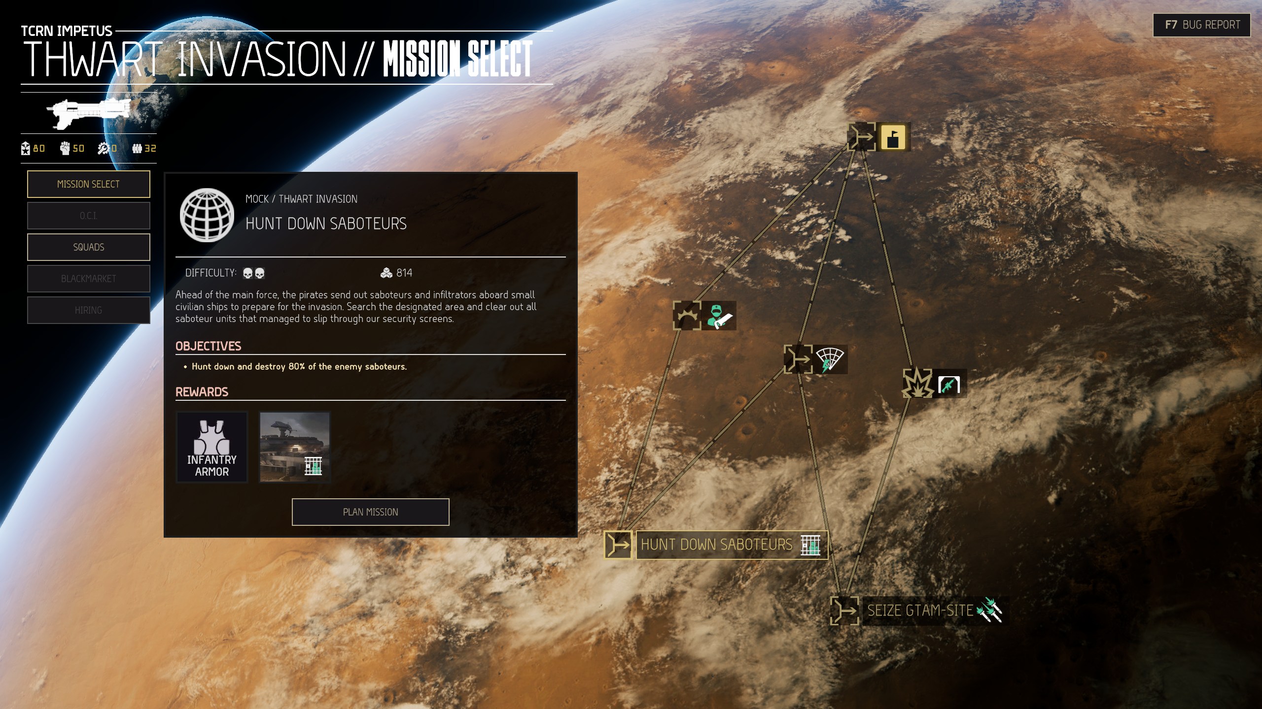 Smoke, close-air support, vehicles, and suppressiono make for harsh bedfellows out in the Wayback.Upon launching a new game, you're shown the mission structure of Menace: The operation. Unlike other games in the genre, a combat deployment in Menace is a chain of linked missions combined into an operation with an overarching goal. The mission objectives and rewards in a given operation vary. Some rewards are tactical and only apply to this operation (extra resource drops, friendly field support). Others are permanent fixtures that stay with you. Each mission must be completed to succeed in the operation.
