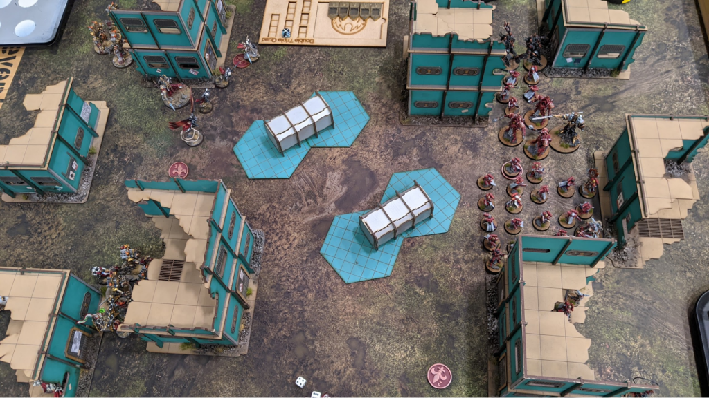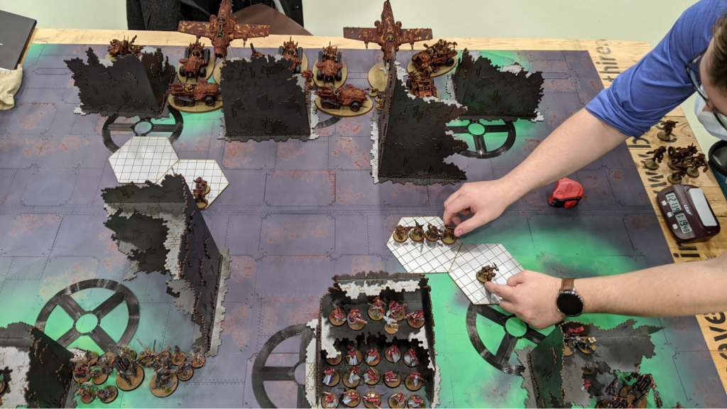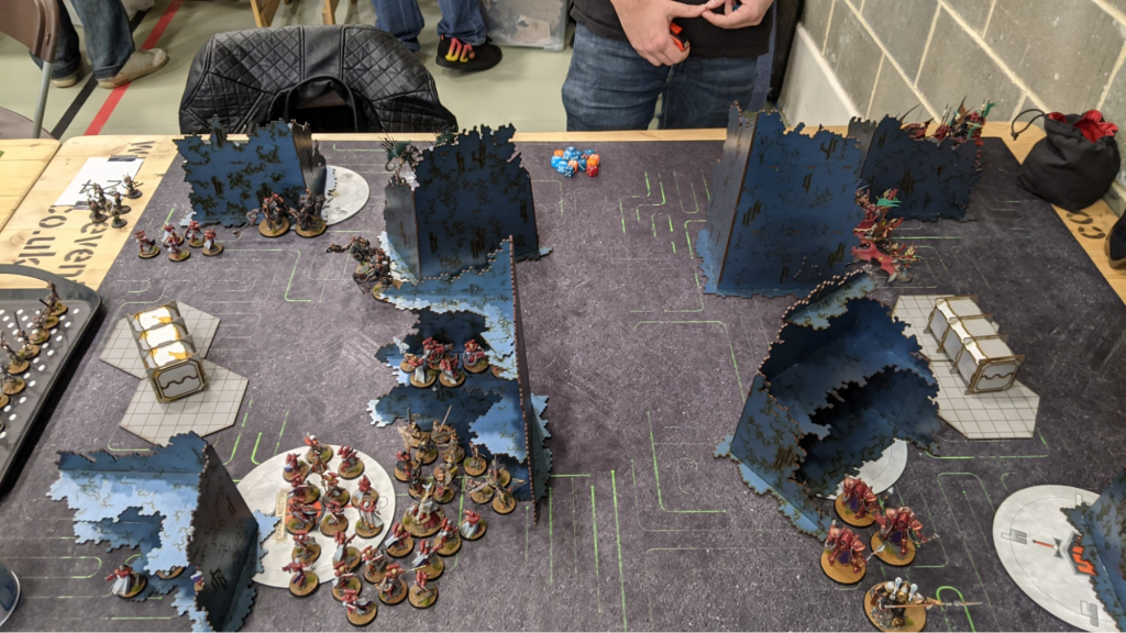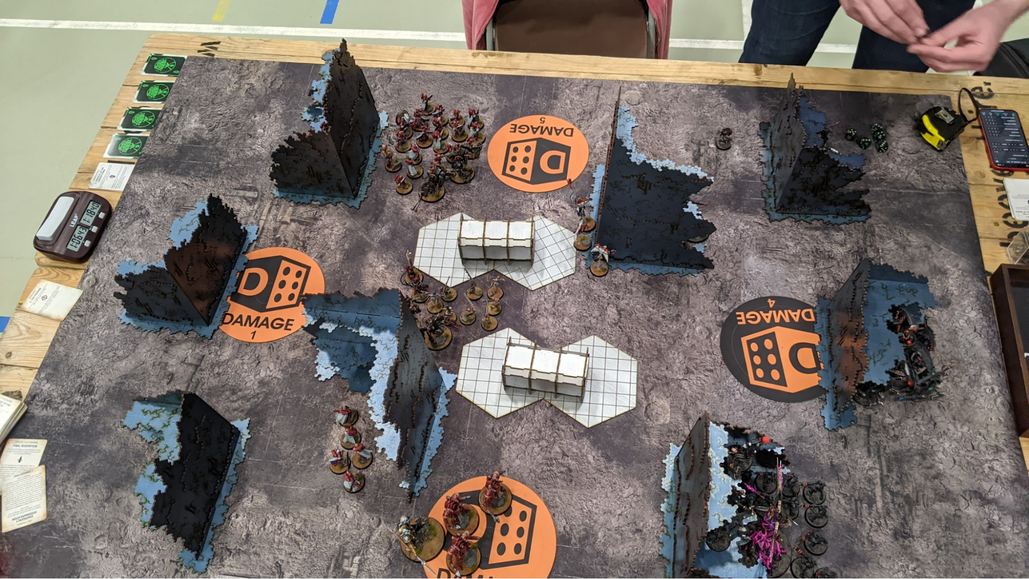I hadn’t fully factored in the differences between how the army would play across different deployment maps. It turned out that the long deployments often were my weakness, and I didn’t really know this until the end of game 2. Being aware of this would have helped me know how to play these missions better, and hopefully given me a better chance at taking those games, or at least made them a closer fight. I also need to get a set of the mousemat style objective markers (Corrode: Right here, buddy), they’re just much easier and clearer for both players.