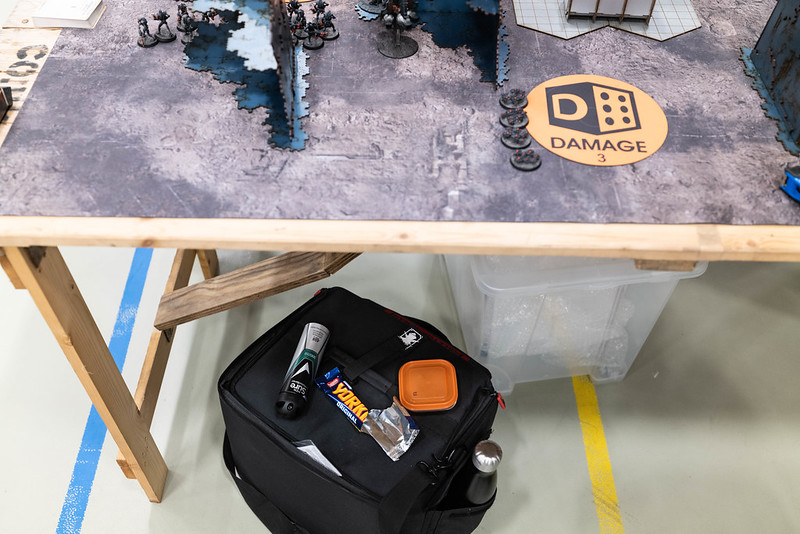 “Yeah not bad thanks, I’m 4-1 so far so doing pretty well.” “Uhhhhhhh, I’m 1-4… Why the hell are we paired?” We double check BCP, and check our scores had been entered correctly and they all were. I guess we’ll do it live! I instantly know this game is a wash. Even if I play my ass off I will not beat someone who is 4-1, especially considering the overall skill level and standard of play over the weekend. What we should have done here, is go get a TO and point out something was clearly wrong with the pairings, but we just shrugged and got on with the game. Ultimately, Richard was very good about it, and I think we both used it as a bit of an admin/mechanical practice game more than any real competition. I take ROD, To the Last and Defend the Shrine again, hoping to just turtle up and hold for as long as possible, but once again I roll first turn, and lose a turn of potential damage to a well hidden army. When the Death Guard do emerge, they do so with force, and pushing me off my Shrine and by turn 2 have reduced me to holding just one objective (partly down to me making a silly error and moving off an objective I had a squad on). Death Guard, similar to the Ork buggies, just don’t particularly care about my damage output, and Morty in particular has decided that he’s not going to take any damage today and passes practically all his saves and Feel No Pain rolls. I try to get to the To the Last marked PBC with my reserved Repentia, but Richard has cleverly positioned it in a way that I can’t to get to it with a charge coming in from Reserve. I bring them in on the other flank, going for the other PBC, but they fail the charge, even with a miracle dice, and then get shot off the board in Richard’s turn. In the end, I concede at the end of Richard’s turn 2. There’s no game left to play, and I have no fight left in me by that stage. It’s a little hard to really judge this game, as I was just never in with a chance. Richard got a free win, and whilst I don’t begrudge him it, it’s a shame that both of us didn’t really get a proper last game due to what turned out to be a quirk of the BCP pairings settings. Result: 33-100 LossAnd with that, I’m done. 6 games of 40K in two days. I’m pretty tired, though perhaps not as physically tired as I expected, and there’s an element of frustration lingering about the last game, so I throw myself into helping back down the tables that are already finished. We’re due to finish the round at 19:15, and by the time prizegiving starts at 19:30 or so, the hall is almost entirely packed down, with only the last few tables waiting.