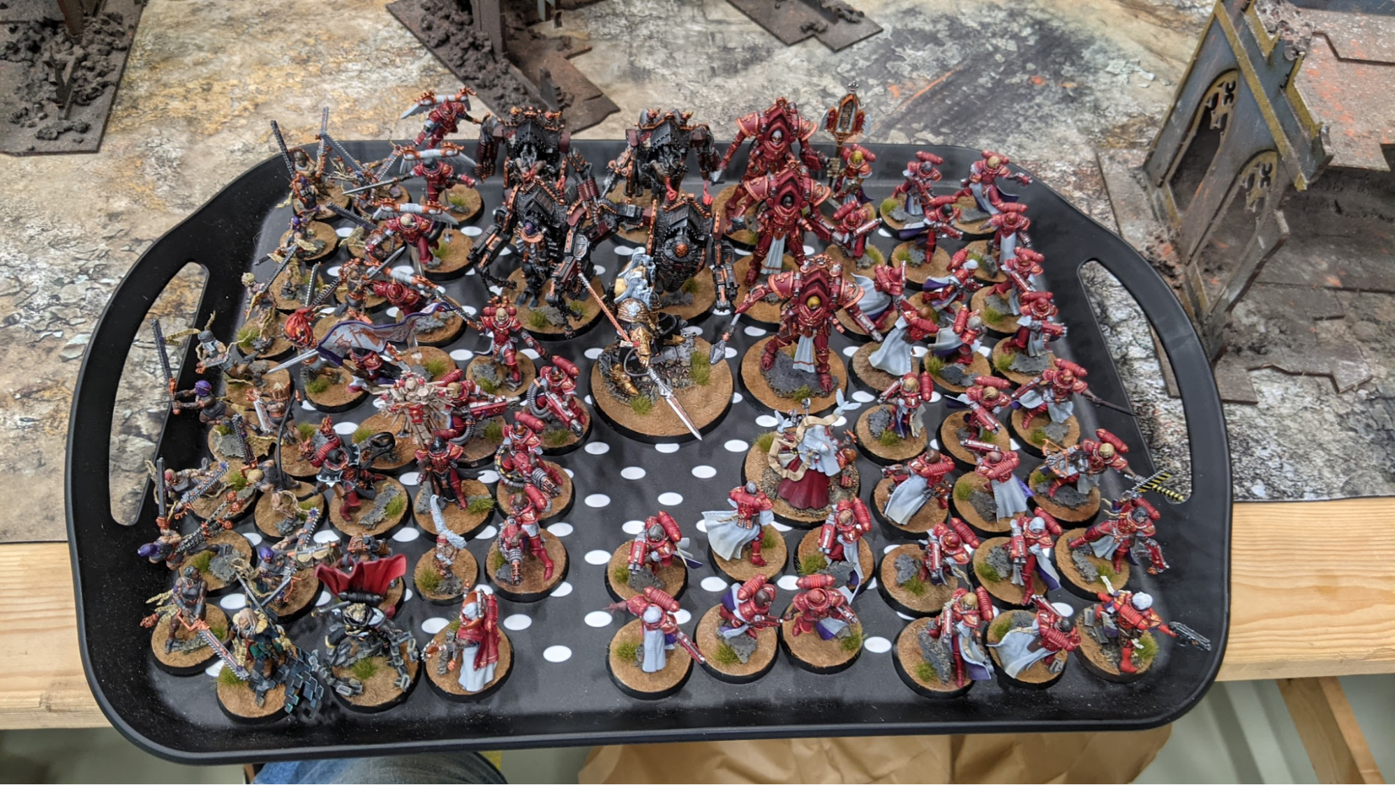 I’ve always considered myself a decent enough player. Within my local group I’m often the one who’ll get asked rules questions, and have run a few small tournaments for the work tabletop group (I work in games, so fortunately have a good supply of people equally into playing 40K readily available). I’d dabbled in a few local tournaments through 2018-19, making a few unsuccessful attempts to take my Space Wolves to some sort of competitive success. When the new Sisters range launched in late 2019, I picked up the army box, and started building up an army as part of an escalation league I was running with a friend for our work group, and as an excuse to take a break from the Wolves. Skip ahead a year and a global pandemic, and GHO UK was announced. By this point, I’d built up a moderate Sisters army, but with lockdown, hadn’t really put any serious in person game time in, especially with 9th and the new codex. “This’ll be a good opportunity to get better and try out a proper tournament,” I thought. I wasn’t wrong!