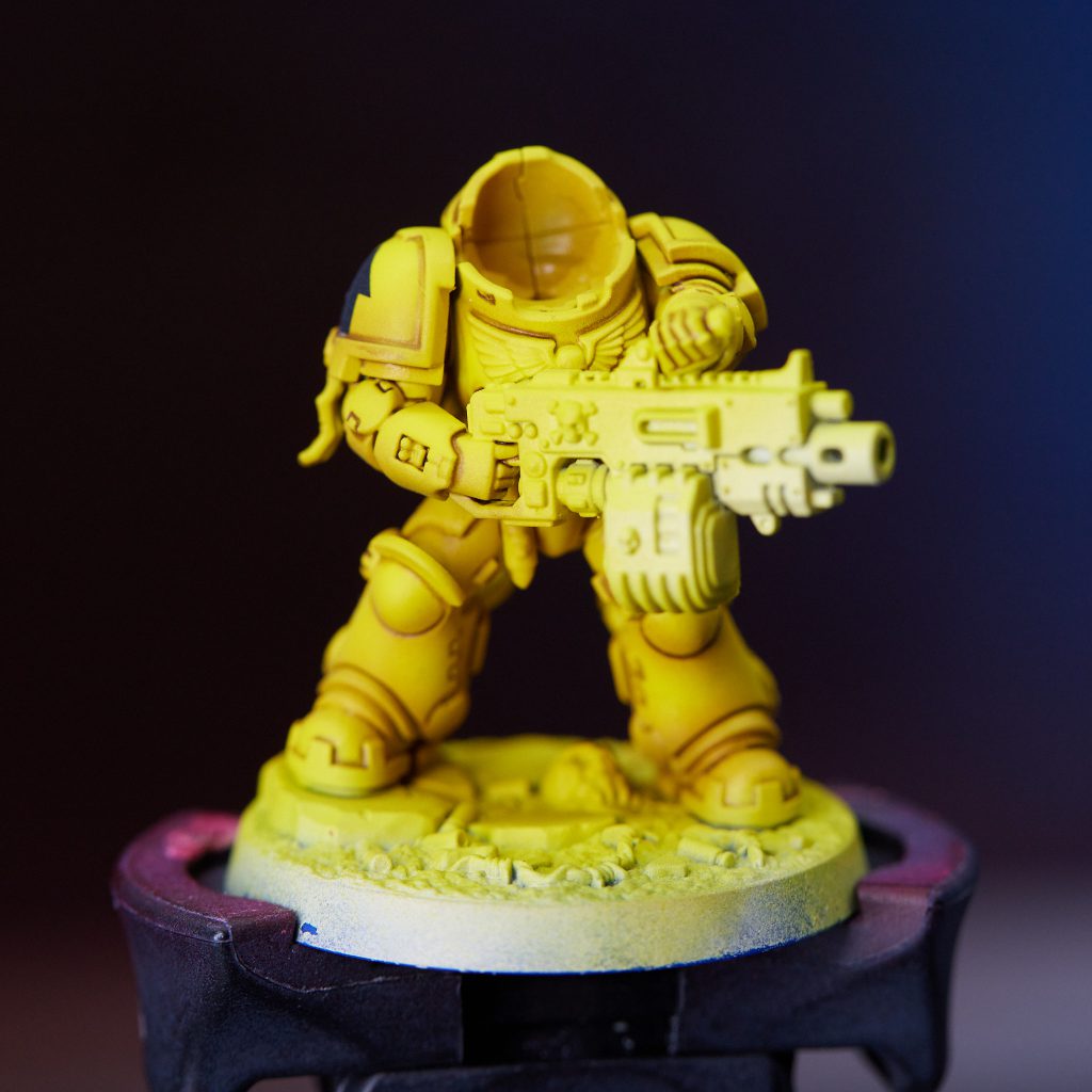 When it comes to painting the Imperial Fists, the big part of what makes them so daunting to paint is the fact that they're primarily yellow. Typically, Yellow is considered a pretty hard color to do correctly since yellow pigments tend to have poor coverage. How you undercoat the model before applying yellow makes a huge difference in how the color will look when you are finished. So let's start by looking at the core aspect of painting Imperial Fists, painting their yellow armor.